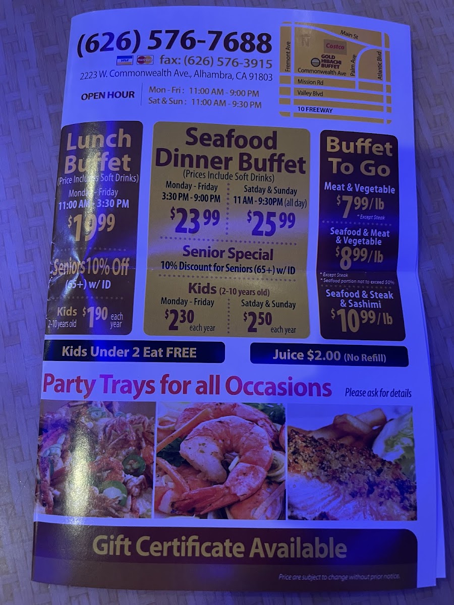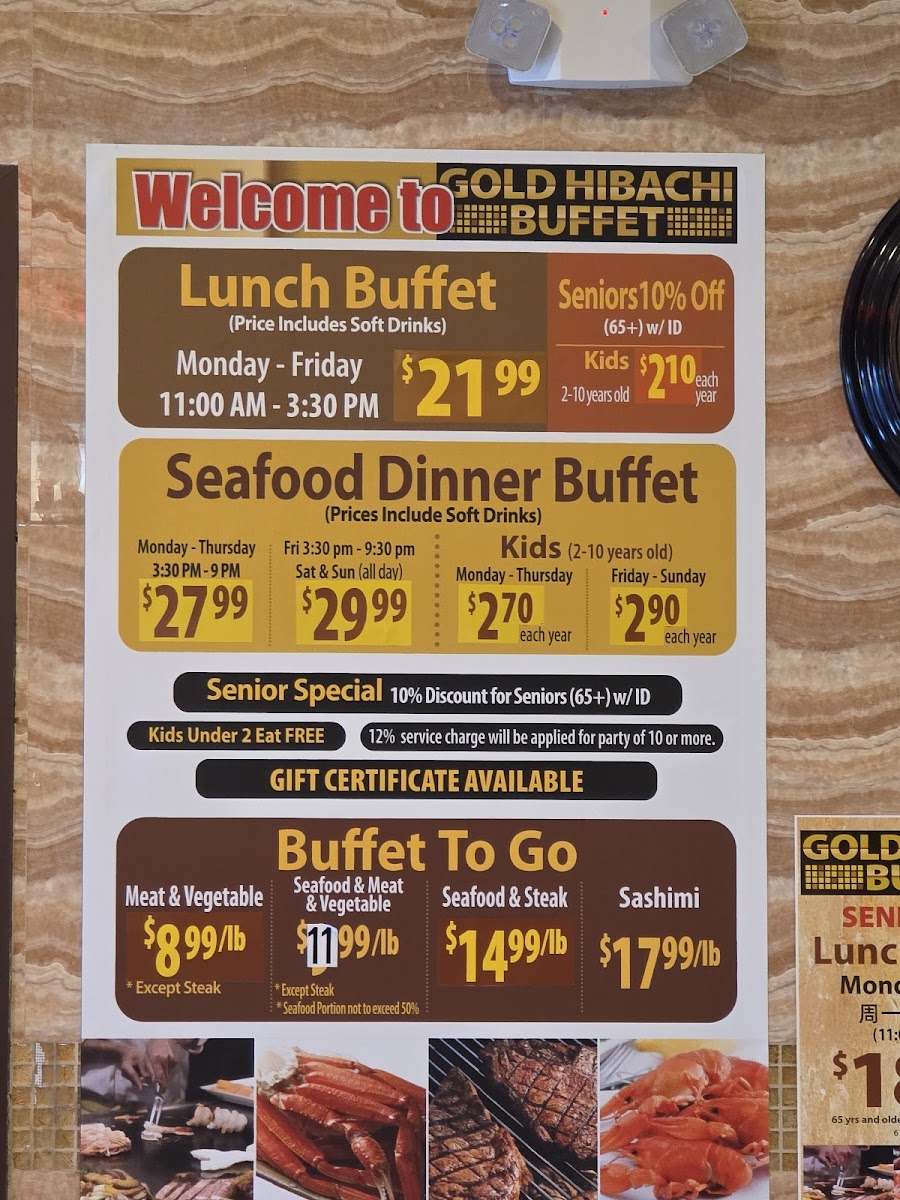 At Gold Hibachi Buffet Menu, you'll find an array of flavorful dishes that cater to every taste. Located in the heart of Alhambra, this vibrant buffet offers a delicious mix of Japanese, Chinese, and American favorites. Whether you're craving freshly grilled hibachi, a variety of sushi, or a comforting bowl of noodles, there’s something for everyone. The buffet is stocked with a wide selection, ensuring each visit is a new culinary experience. The spacious dining area makes it perfect for group gatherings, while the warm and friendly atmosphere invites you to take your time and enjoy the meal at your own pace. Whether you're in the mood for a quick bite or an indulgent feast, the Gold Hibachi Buffet Menu delivers on taste and variety.